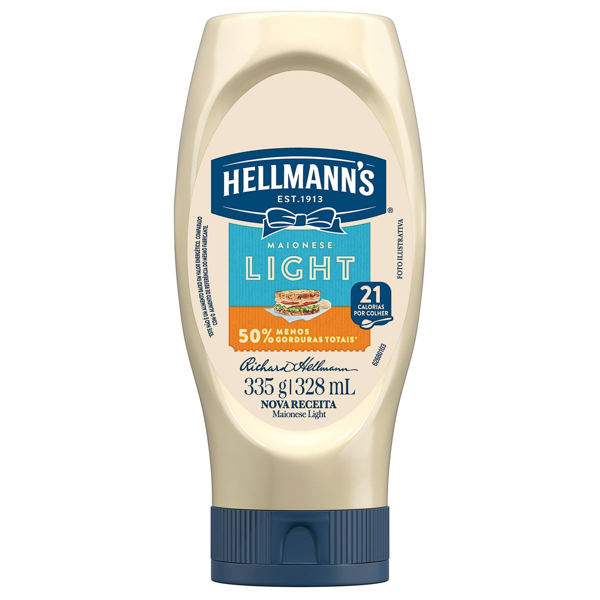 • Maionese Hellmann’s Light Bisnaga: o mesmo sabor e cremosidade da tradicional, com 43% menos calorias*. (*Comparado ao alimento de referência do mesmo fabricante.)