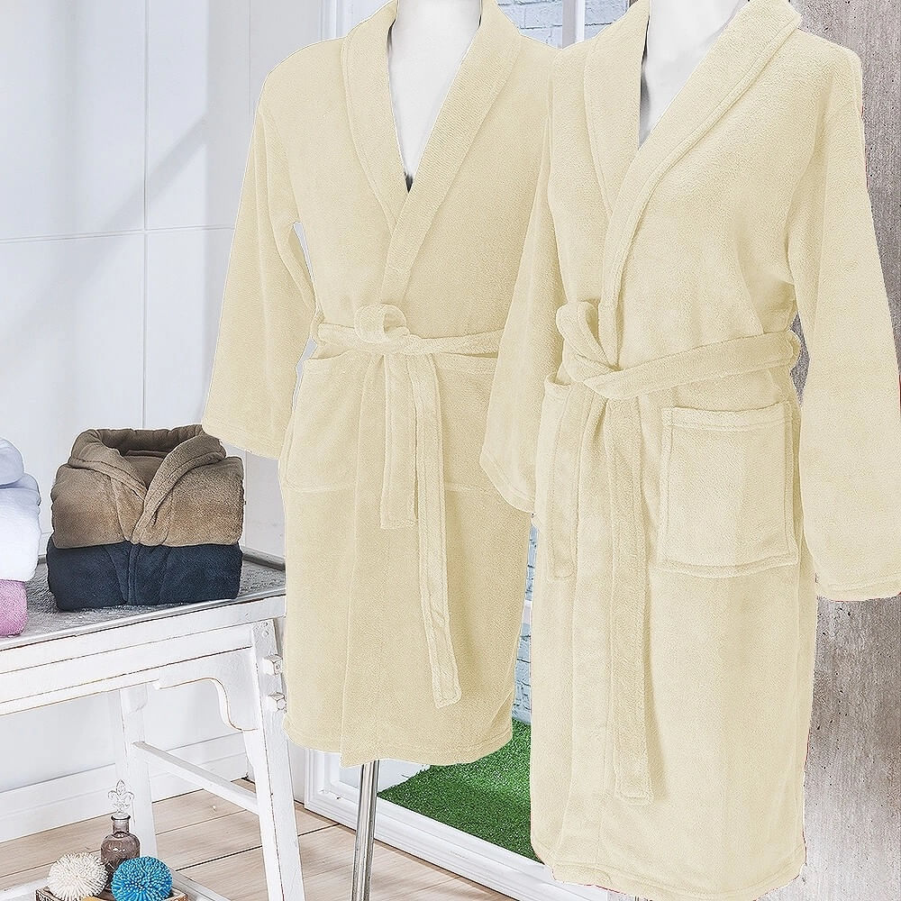 Roupão de Banho Fluffy Andreza disponível na cor marfim, no tamanho GG ,que tem em sua composição 100% poliéster.